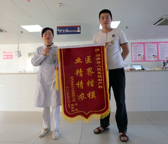 业精情浓 医界楷模 产妇为泗洪县医院妇产科送锦旗表感谢