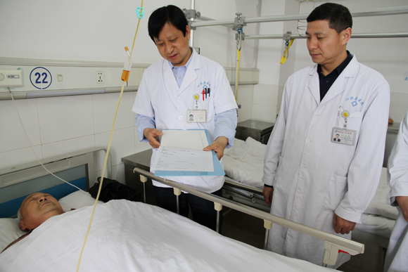 “朱院长,俺的晚年幸福都是您们医生给的啊!”4月29日,在泗洪县人民医院外科十楼22床的腰椎骨折患者孔凡华激动不已,不停地欲坐起来对前来查房的朱冬承院长道谢,朱院长亲切地笑着说,“老孔您赶紧躺下不要起来,别忘了您是五天前才做完手术的,不要认为您手术后第二天就能下床走路,骨骼就长好了,要注重休息,为您治好病啊是我们的职责,躺下、躺下。”