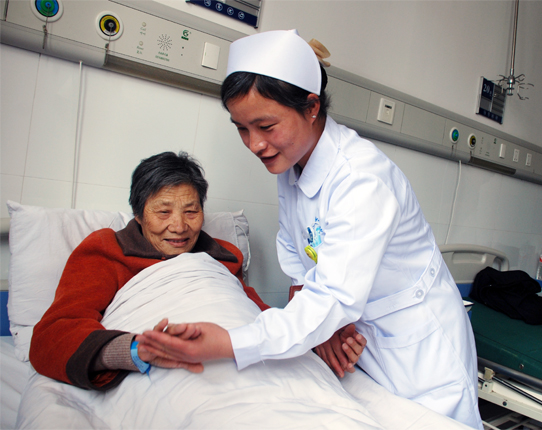 “大娘,您躺下,我来给您抽个血。”在泗洪县中医院九病区心脑病科,护士刘伟平面带微笑,小心翼翼地把74岁的患者孙更兰扶着躺下,“您这糖尿病是慢性病,得慢慢调理,平时饮食一定要多注意,低盐低脂,更要保持一个好的心态。”聊天过程中,绑绷带、擦药、抽血,刘伟平干净利索地完成了抽血过程。