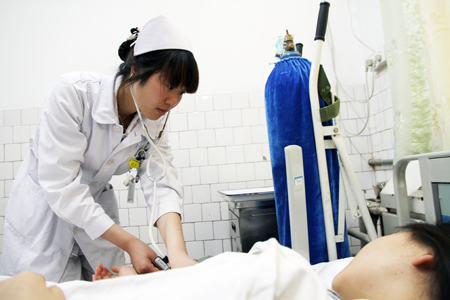 观察病情、量血压、吸氧、输液、心肺复苏、监护心电……这是泗洪县人民医院急诊科最常发生的一幕。也是该科护士陈嫚每天所要面临的紧张工作场面。