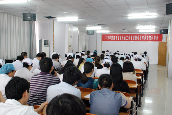 导读:5月14日下午,泗洪县人民医院在综合楼五楼第二会议室召开了2015年感染管理委员会工作会议暨现患率调查知识培训,泗洪县人民医院副院长吴保安、医院感染管理委员及全院感控小组成员共同参加了会议,会议由泗洪县人民医