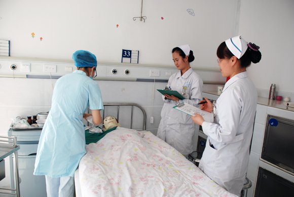 导读:“您好,我是护师聂桂娥,由于您的病情需要,根据医嘱要给您留置胃管,通过胃管给您注入营养物质和药物……”5月21日下午,泗洪县人民医院内科楼八楼内,护师聂桂娥正在对着病床上的“模拟病人”进行鼻饲基本操作技能考核。此次护理技能考核是由我院护理技能考核组进行的例行常规考核。