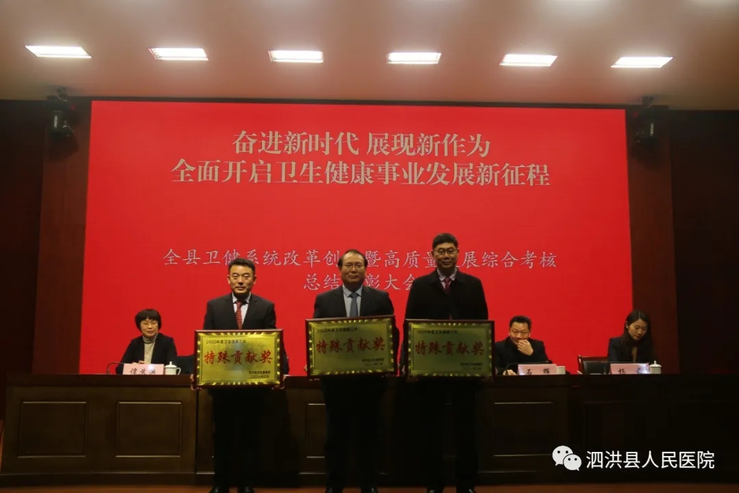 导读:3月5日,在全县卫健系统改革创新暨高质量发展综合考核总结表彰大会和党建暨党风廉政建设工作会议上,泗洪县人民医院荣获多个奖项。 我院获得“医疗机构综合管理先进单位”、“卫生健康工作特殊贡献奖