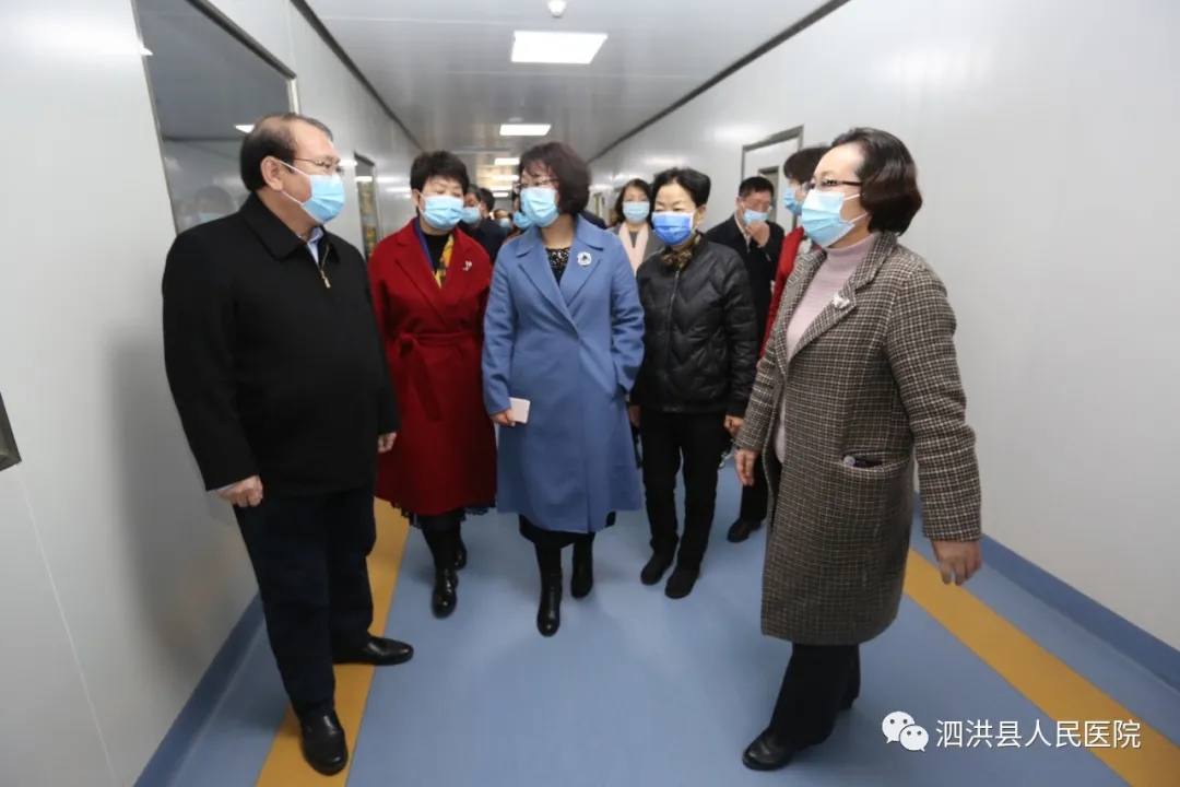 3月12日下午,市卫健委党委书记张岩一行莅临我院观摩指导工作。县卫健局党委书记、局长胡竹芳,洪医集团董事长高开亮,副董事长、泗洪县人民医院院长高明献陪同观摩。