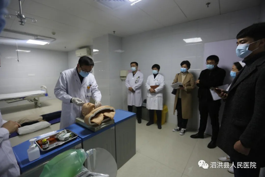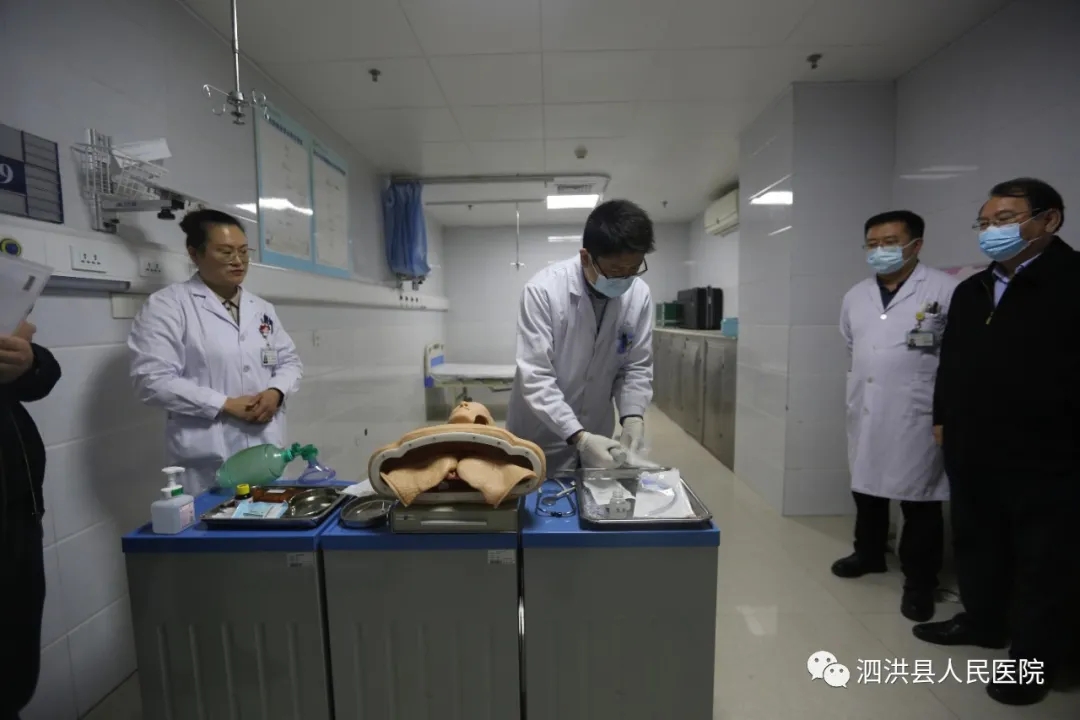 督查组通过抽查的方式,随机对医务人员进行了气管插管、心肺复苏、环甲膜穿刺的技能操作考核。督查组对现场操作的医务人员给予了充分肯定,同时对操作过程中存在的不足作出点评。