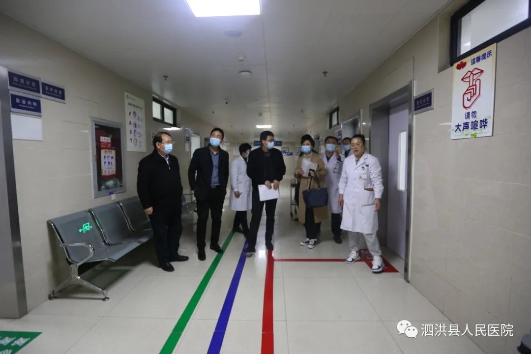 4月3日下午,由宿迁市第一人民医院专家陈义忠、杨茗岚,市医政科胡方顺等一行组成的督查组,到我院对新冠病毒疫苗接种医疗保障培训工作进行督查。洪医集团副董事长、泗洪县人民医院院长高明献和副院长孙士梅带领相关负责人陪同检查。