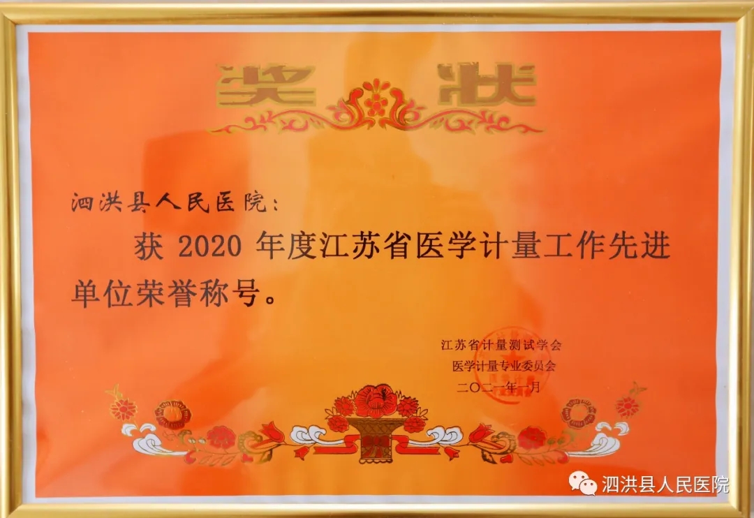 导读:近日,从江苏省医学计量学术年会上传来喜讯:泗洪县人民医院被省计量测试学会医学计量专业委员会评为医学计量工作先进单位。 这也是我院连续5年(2016-2020)获得此项殊荣。 为了更好的保证我院医学诊断的准确性,安全性
