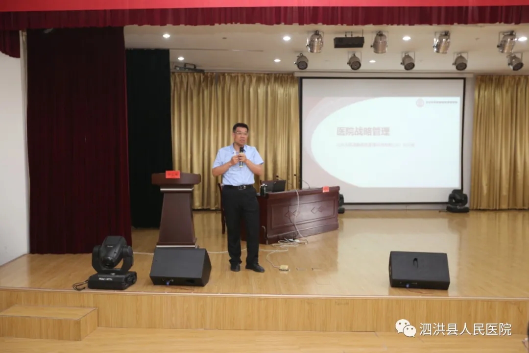 为了不断提高洪医集团的整体管理水平,5月18日,我院邀请北京精实医院管理咨询有限公司培训专家刘文斌来院,进行医院战略管理培训。吴保安董事主持会议。泗洪县人民医院、中医院、第三人民医院近200名中、高层管理人员及技术骨干参加了培训。