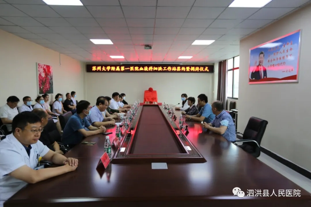 7月17日上午,在泗洪县人民医院综合楼会议室举行“苏州大学附属第一医院血液科泗洪工作站”签约暨揭牌仪式。苏州大学附属第一医院血液科主任仇惠英教授、刘立民教授、张剑教授、杨小飞教授、泗洪县卫健局副局长谭苏洪,洪医集团高开亮董事长、高明献院长及董事会其他成员、医院其他领导班子成员,各职能科室负责人,大科主任、护士长,我院血液科主任、护士长及医生代表出席了活动。 洪医集团副董事长、院长高明献主持了仪式。他强调指出,在县委、县政府和县卫健局的正确领导和关心下,在社会各界的大力支持下,通过全体职工的共同努力,我院就医环境、人才队伍、技术水平、医疗质量、服务能力等得到了进一步提升,2020年医院在积极做好新冠疫情防控的同时,成功创建为三级综合医院,我院的发展进入了新阶段。站在新的起点上,我们面临着新的形势、新的挑战和新的机遇。我们必须以新发展理念为指引,顺应形势,靠大靠强,把充分利用外部高端资源作为医院发展的战略定位,及时推进医院发展模式转型。 他说,苏州大学附属第一医院是卫生部首批三级甲等综合医院、江苏省卫健委直属的省级重点医院,贵院血液科是国家级重点学科。多年来,我院得到了贵院的大力支持和帮助。2006年我院就是贵院的对口帮扶医院,贵院的许多专家来我院坐诊、查房和手术,举办多次学术讲座,举行多次义诊,贵院也接受我院多名医护人员进修学习,使我院的综合实力得到了不断提升。近期我们按照县卫健局的要求,积极创办名医工作站。经过与贵院医务处的多次恳请和沟通,在各位教授的大力支持下,“苏州大学附属第一医院血液科泗洪工作站”即将成立,这是我院发展历程中一件大事、喜事,必将进一步推动我院高质量发展。 高院长最后说:“苏州大学附属第一医院血液科泗洪工作站”正式落户泗洪医院,这在洪医集团发展史上将成为一个重要的里程碑。能够得到你们的帮扶,我们感到非常荣幸,也感到压力巨大,我们将全力做好服务工作。我们坚信,有各位领导及各位专家的关心、支持和帮助,“苏州大学附属第一医院血液科泗洪工作站”必将硕果累累,造福百万泗洪人民。 高开亮董事长与仇惠英主任签订设立工作站协议 仇惠英主任与谭苏洪副局长为“工作站”揭牌 活动结束后,仇惠英主任一行专家深入病区查房 在县医院门诊大厅,仇惠英主任一行现场举行义诊活动 以后苏州大学血液科专家,每周一都会来泗洪县人民医院坐诊、查房,欢迎大家提前预约。 咨询电话:0527—86241551