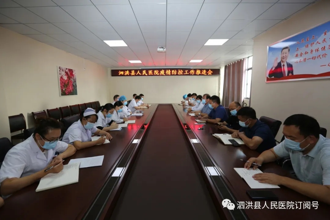 8月16日早上,我院在综合楼第三会议室紧急召开疫情防控工作推进会,传达近期市、县疫情防控精神,对下一步疫情防控工作进行部署。医院各部门相关负责人参会。会议由洪医集团副董事长、泗洪县人民医院院长高明献主持。